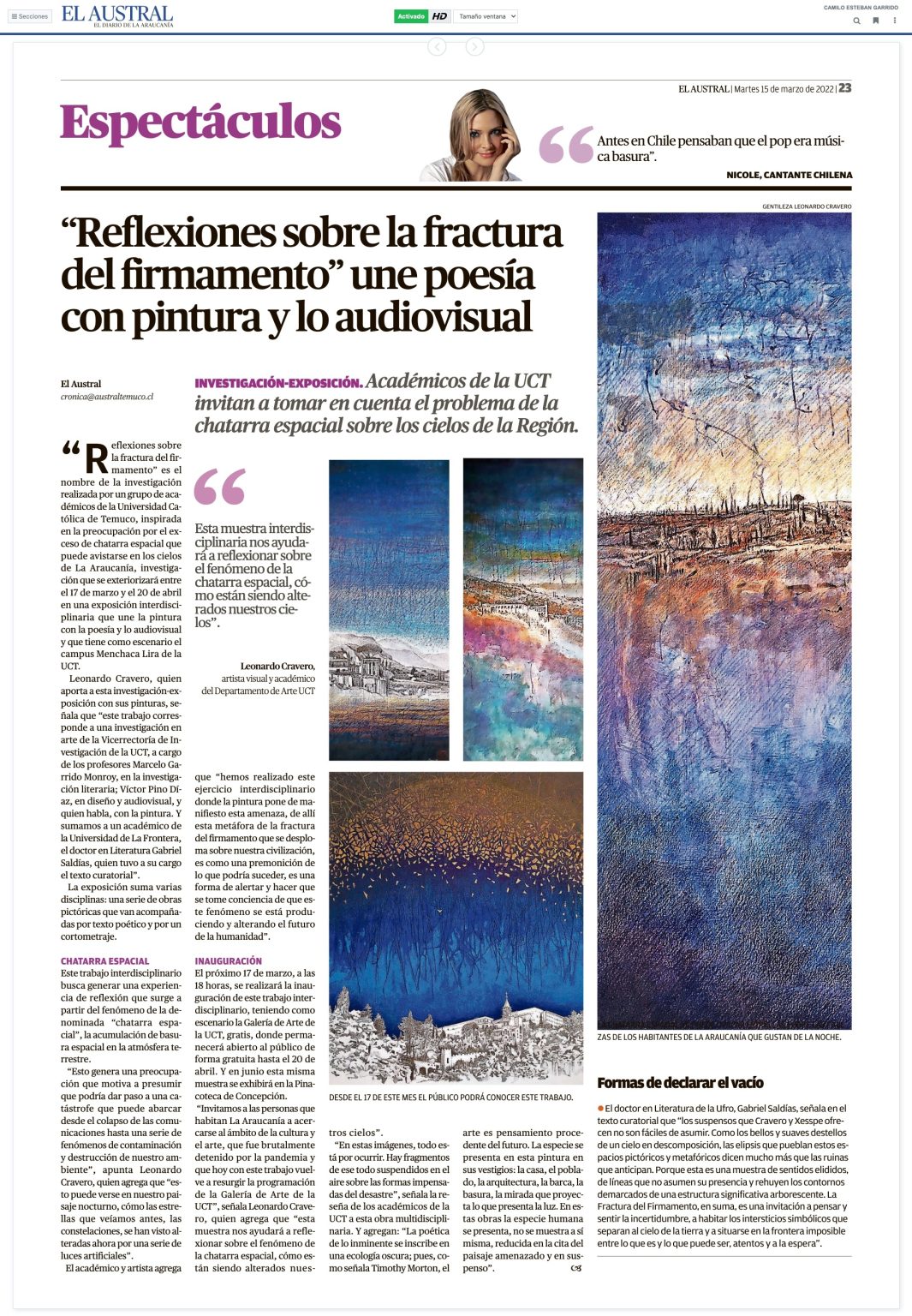 Reflexiones sobre la fractura del firmamento. Participa Dr. Gabriel Saldías, investigador del Núcleo en Ciencias Sociales. Columna completa