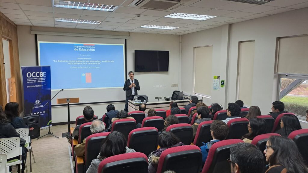 El conversatorio “La escuela como espacio de bienestar: análisis de indicadores de convivencia” contó con la participación del superintendente de Educación Mauricio Farías Arenas y se realizó en el auditorio del núcleo en Ciencias Sociales y Humanidades de la Universidad de la frontera.